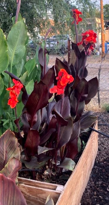 Cannas are a great poolside plant because there are no dropping from the leaves or blooms !!